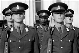 G.B. ENGLAND. Army. The lack of Black British Officers is frequently remarked on by the US Army, which thanks to positive discrimination has scores of black generals, and where 10% of the officers are black. Drill practice at Sandhurst, of the 5,000 black men and women in the British army, few achieve Non commissioned Officer status and only a handful have become officers. 1987