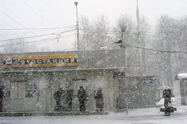 Russia. Moscow. Bus station adjoining Partisanskaya metro station. 14.03.2012.