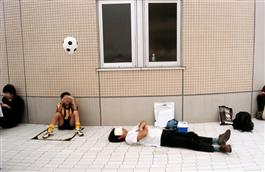 Japan. Special coaching session for local kids teams outside Saitama Stadium. 2001.