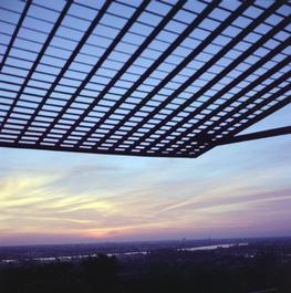 France. Bordeaux. Hotel room in The Hotel Saint-James, designed by Jean Nouvel, overlooking their own vineyards and the sunset over the city of Bordeaux