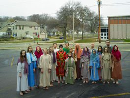 USA. Wisconsin. Wauwatosa. Palm Sunday Passion Players, St Matthews Evangelical Lutheran Church