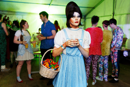 GB. England. Oxford. Wadham College. Queerfest. LGBTQIA+ culture is celebrated at Oxford with a week of events culminating in Queerfest in the gardens of Wadham College. 2014.