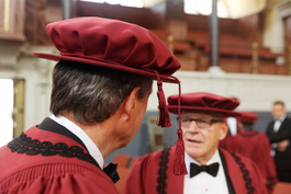 GB. England. Oxford. Chancellor's Court. The annual meeting of the Chancellor’s Court of Benefactors. Only individuals or organisations who donate more than £1.5 million are eligible to become members of the court, who are admitted in a special ceremony, presided by the Chancellor. 2014.