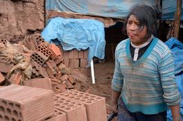 Peru. Cusco. 2014. In the region of San Jeronimo artesanal brick-makers use improved technology to reduce carbon emissions by electrically powered ventilation. Bricks are stored for some day before being loaded into the kiln.