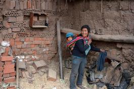Peru. Cusco. 2014. In the region of San Jeronimo artesanal brick-makers use improved technology to reduce carbon emissions by electrically powered ventilation. Bricks are stored for some day before being loaded into the kiln.