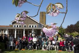 GB. Jersey. St Helier. Liberation Day. Wreath laying ceremony at the crematorium for forced workers. 2013.
