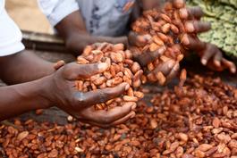 GHANA. Cocoa seeds after drying. 2015.
