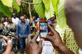 GHANA. Assin Sienchem. John Dramani Mahama. President of Ghana visits cocoa farm. 2015.
