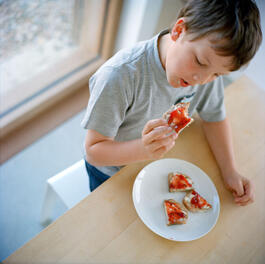 GB. Kent. Dungeness. An old coastguard tower converted by Fiona NAYLOR and Peter MARLOW. 2001. Max enjoying his bread and jam.