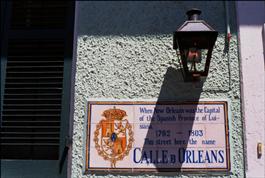 USA. Louisiana. New Orleans. French Quarter. Tiled street sign showing that from 1762 to 1803 New Orleans was the capital of the Spanish province of Luisiana and Orleans Street was Calle de Orleans.