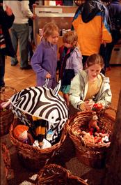 England. Cornwall. St Austell. The Eden Project shop full of baskets of toys to tempt youngsters into pestering their parents to buy.