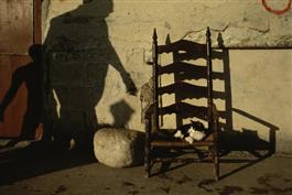 DOMINICAN REPUBLIC. Santo Domingo. Cat on a chair in the old city. Pizarro 1992.