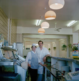 G.B. ENGLAND. Margate. A portrayal of a traditional English seaside resort. Kingfisher restaurant. The last day for George and Chrystalla GEORGIO who have owned the restaurant since 1961. 2002.