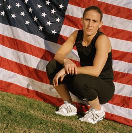 USA. California. Los Angeles. Adidas commercial assignment. Mia Hamm (USA) US Womens Football team captain. 2002.
