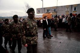 An IRA escort accompanies Bobby SANDS' coffin to the Milltown cemetry.