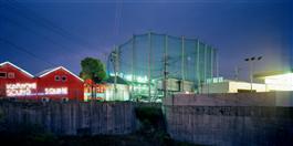 JAPAN. Miyazaki Prefecture. Miyazaki City. Baseball nets and Karaoke Club. April 2000.