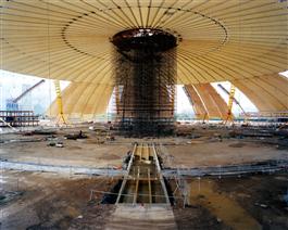 GB. ENGLAND. Greenwhich. From a distance the heavy machinery of the construction site resembled nothing more than toys in a sandpit. The roof material, a particularly nasty shade of magnolia, was supposed to bleach in the sun. It did, eventually, even though it seemed to rain everyday. 2 June 1998.