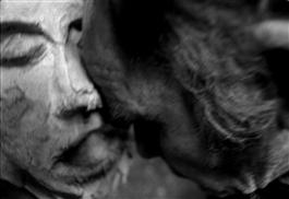 GREECE. Dodecanese islands. Leros. At the psychiatric hospital. Elias hugs a mask inside the sculpture workshop, the mask being a representation of himself. 1994.