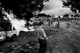 AUSTRALIA. New South Wales. Mount Panarama. Bathhurst. In the midst of demolishing another car, a man takes a second to stop and dream. 1999.