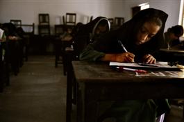 INDIA. Hyderbad. Around 90% of the cities children, including these students from poor familes attend school. This is reflected in the literacy rate which is also about 90%. 2002.