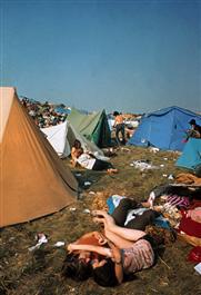 GB. ENGLAND. Isle of Wight Festival. A couple waking up after...
