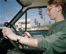 GB. England. "After the car the next thing my parents bought for me was a portable phone which they insisted I had in the car in case of emergency. And also to tell them if I was going to be late home." From the series 'From A to B. Tales of Modern Motoring'. 1994.