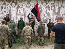 A former sanatorium near Mariupol occupied by fighters of militia Pravy sektor (Right Sector).