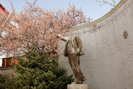 Kyrgyzstan. Fergana Valley. Osh. 2008. A Lenin statue marks the entrance of a Soviet factory that is being converted into a warehouse for products from China.