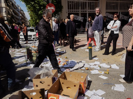 GREECE. Athens. 2014. The traditional grocery market offering fruits and vegetables for free for the people in need. City center.