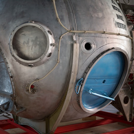 GB. England. London. 2015. The Science Museum. ‘Cosmonauts’ exhibition. The LK-3 Lunar Lander in three parts prior to it’s assembly by the Museum staff under the careful supervision of Russian Engineers.