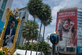 THAILAND, Bangkok, 2015/05. Depictions, statues, of Thai King...