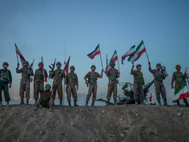 Iranian paramilitary Baseej forces reenact the Iran-Iraq War...