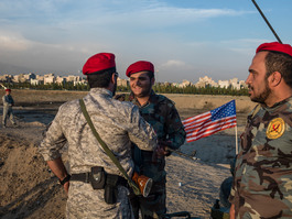 Iranian paramilitary Baseej forces reenact the Iran-Iraq War...