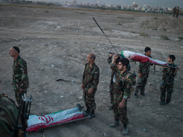 Iranian paramilitary Baseej forces reenact the Iran-Iraq War...