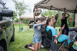 CANADA. Aanjawnaang, Ontario. 2015. Preparing hair for competitive dancing.