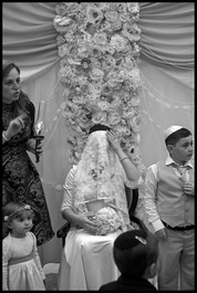 UKRAINE. Dnipropretovsk. A Jewish wedding takes place in the Menorah Jewish Center. The bride tries on the nuptial veil.