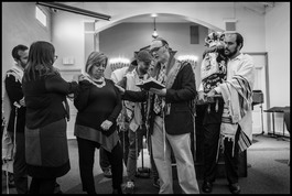 USA. Los Angeles. Saturday morning service at the Ahavat Zion, a messianic synagogue whose members are "Jews for Jesus" who believe Jesus was the Messiah. New members of the board are being prayed upon.