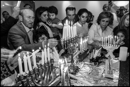 USA. Los Angeles. An extended family of Iranian Jews, the SOUFERIAN, celebrates Hanukkah, the festival of lights with a lavish meal and much rejoicing. Candles are lit.