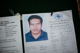 MEXICO. Mexico City. 2015. Salvation Army Hospice. Poster for Jose Alejandro Riveras Rivas ”disappeared” migrant. According to the National Committee for Human Right, 20,000 persons are kidnapped in 2011.