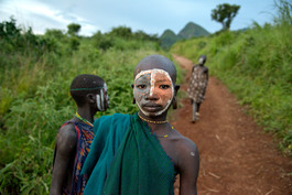 ETHIOPIA. Suri Tribe, Tulget, Omo Valley, 2013. A child with...