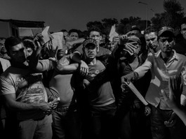 GREECE. Lesbos. 2015. Refugees and migrants arriving on Lesbos island are transferred to Moria refugee camp to registration from authorities before they can move on.