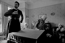 England. London Woolwich An Anglican priest visiting his elderly parishioners in their home.