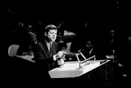 USA. NYC. 1961. President John F. Kennedy speaking at the United Nations.