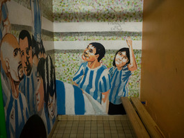 Maison d'arrêt de Nanterre. Cellule pour les nouveaux arrivants, en attendant qu'une cellule soit assignée, cela peut prendre 48H selon l'affluence de nouveaux détenus.