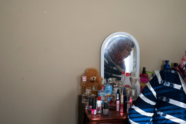 USA. Aurora, Illinois. 2015. Sham Al Hajali in her room at home....