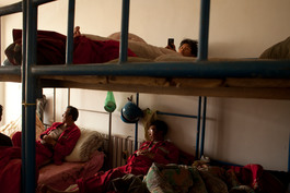 CHINA. Tazhong. 2009. Han Chinese oil workers on their day off. They work in the Tazhong oil fields in the Taklimakan desert and stay in dorms at the cross desert highway reststop on their days off. Uighurs no not permitted to work in these fields.