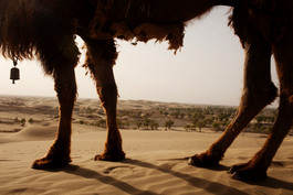 CHINA. Lop Nur. 2009. The Taklimakan desert seen through he legs of a camel.