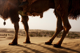 CHINA. Lop Nur. 2009. The Taklamakan desert, seen through the legs of a camel.