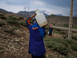 IRAN. Zardkuh, Chaharmahal and Bakhtiari. 2018. Zeynab Gheybipour, 20 years old bringing water for their family with her cousin Mahtab Gheybipour, 20 years old. Zeynab didn’t get married yet and she got her bachelor in computer. “ I always wanted to be a nurse but because there no nursing school around us I had to study computer. I am looking for a job which is really hard to find because we are moving twice a year. My sister and I studied in a boarding school as our parents really wanted us to study.” Mahtab who is at the same age with Zeynab is married and have 2 kids. There are many things within Bakhtiaris which are women’s job and no man would do that such as bringing water or milking the flock.
