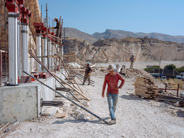 Turkey, Hasankeyf, 2018. Construction workers prepare Imam Abdullah mosauleum to move it to the "New Hasankeyf"